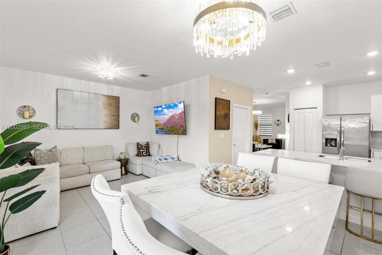 Spacious & Bright 3 bed, 2.5 bath townhouse ready for occupancy. This newly constructed home has plenty of parking & a 1 car garage. Home sits on a corner lot w/ a back yard of green space, Joe and Colleen Griffin Park. Owner has fully renovated the Patio w/ a new privacy fence, pergola w/ 2 fans & 8 lights, concert slab w/ turf flooring for outdoor sitting or dining pleasure. Newer kitchen w/ SS appliances, quartz countertop and pantry. Dining and Florida/ Great room give access to the back patio makes a wonderful flow for entertaining. High quality designer lighting fixtures with 2 chandeliers and plenty more touches to see. Access to clubhouse, resort size pool with hot tub & a gym. Dogs are welcomed